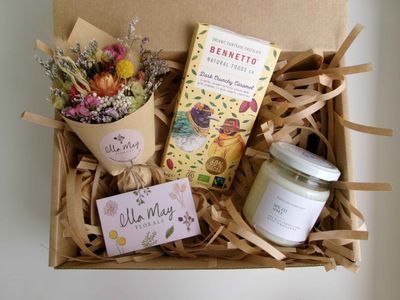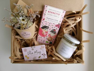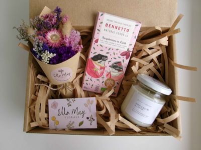 These customizable gift boxes make thoughtful presents for friends or family. Treat someone special, or even yourself to this box of goodies. Choose your preferred bouquet colour, candle scent and chocolate flavor.