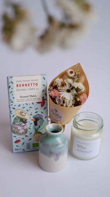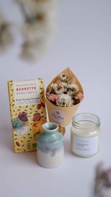 These customisable gift boxes make thoughtful presents for friends or family. Treat someone special, or even yourself to this box of goodies. Choose your preferred Chocolate flavour and Candle scent.