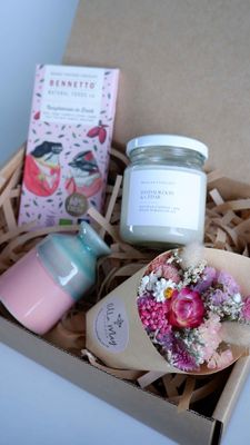 These customisable gift boxes make thoughtful presents for friends or family. Treat someone special, or even yourself to this box of goodies. Choose your preferred Chocolate flavour and Candle scent.