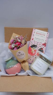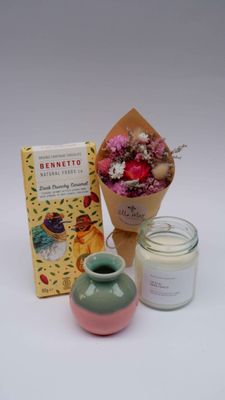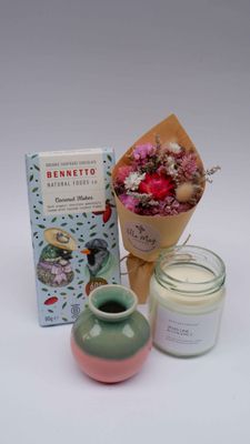 These customisable gift boxes make thoughtful presents for friends or family. Treat someone special, or even yourself to this box of goodies. Choose your preferred Chocolate flavour and Candle scent.